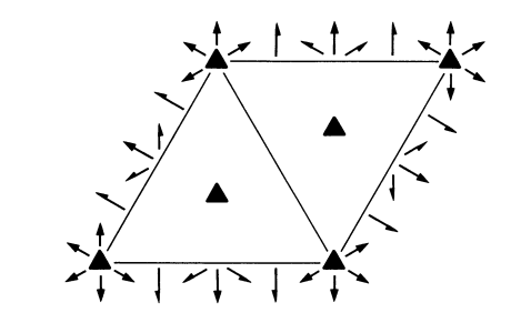 For hexagonal or non-rhombohedral trigonal lattices, a third symbol might be given, corresponding to the unique axis \(\mathbf{a}_{H}-\mathbf{b}_{H}\). It would be a good exercise to determine the direction of the vector on the diagram above. It is crucially different to the vector \(\mathbf{a}_{H}+\mathbf{b}_{H}\)