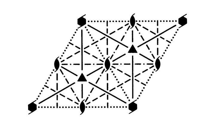 The diagram on the left is \(P6_{3}mc\) as there is a mirror plane present perpendicular to \(a\) (also one perpendicular to \(b\), as these axes are equivalent!). The diagram on the right is \(P6_{3}cm\) as the \(c\) glide is perpendicular to \(a\), while the mirror plane is perpendicular to \(\mathbf{a}-\mathbf{b}\).